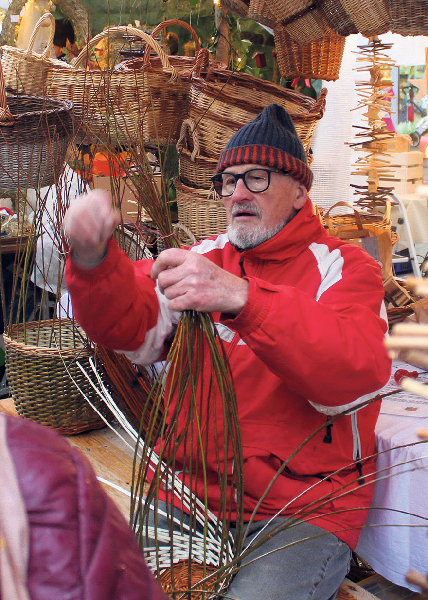 Adventliche Dekorationen und weihnachtliche Auslagen; nur das Wetter passte nicht. Anstatt Schneeflocken prasselte, vor allem in den Nachmittagsstunden, der Regen auf die Hauptstrasse. Verderben liessen sich die Laune aber weder die Marktfahrerinnen und Marktfahrer noch die Besucherinnen und Besucher. «Wir haben uns trotz schlechter Wetterprognose sehr auf den ‹Daheim-Markt› gefreut», sagte Mira Schneider von der Antilopenfarm Herznach. Dank neuen und bekannten Gesichtern liefen die Geschäfte gut. «Wir sind zufrieden.» Körbe flechten könne er auch mit kalten Händen, sagte Heinz Mangold aus Wegenstetten. Sein Handwerk hat er vor 35 Jahren auf dem Ballenberg gelernt; gerne blieben die Leute eine Weile bei ihm stehen und schauten interessiert zu. Viel Buntes, selbst gezogene Kerzen sowie Strickwaren, waren am Stand der Familie Schreiber aus Stein ausgelegt. «Die Produkte verkaufen sich gut.»