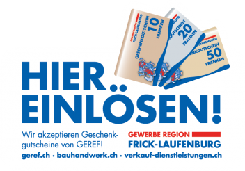 Mit den Geschenkgutscheinen von GEWERBE REGION FRICK-LAUFENBURG überraschen Sie Ihre Freunde. Weitere Infos